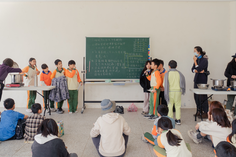 △ 花蓮縣吉安鄉化仁國小神農計畫課程:高年級以氣候變遷為主題,分組進行辯論比賽。